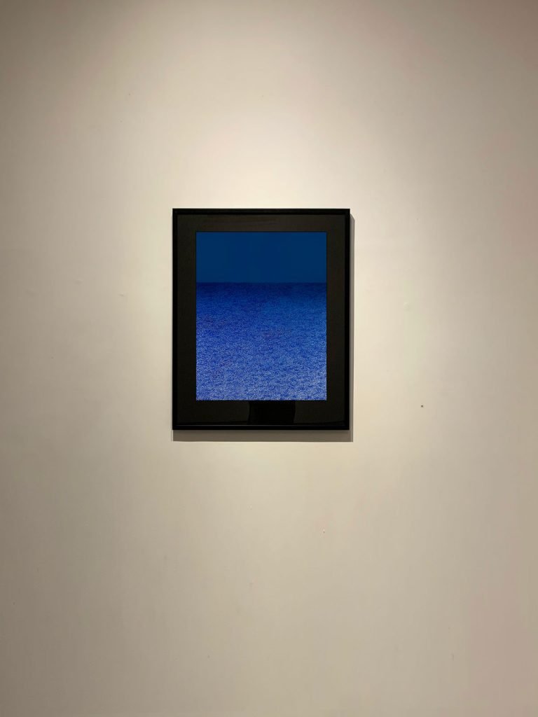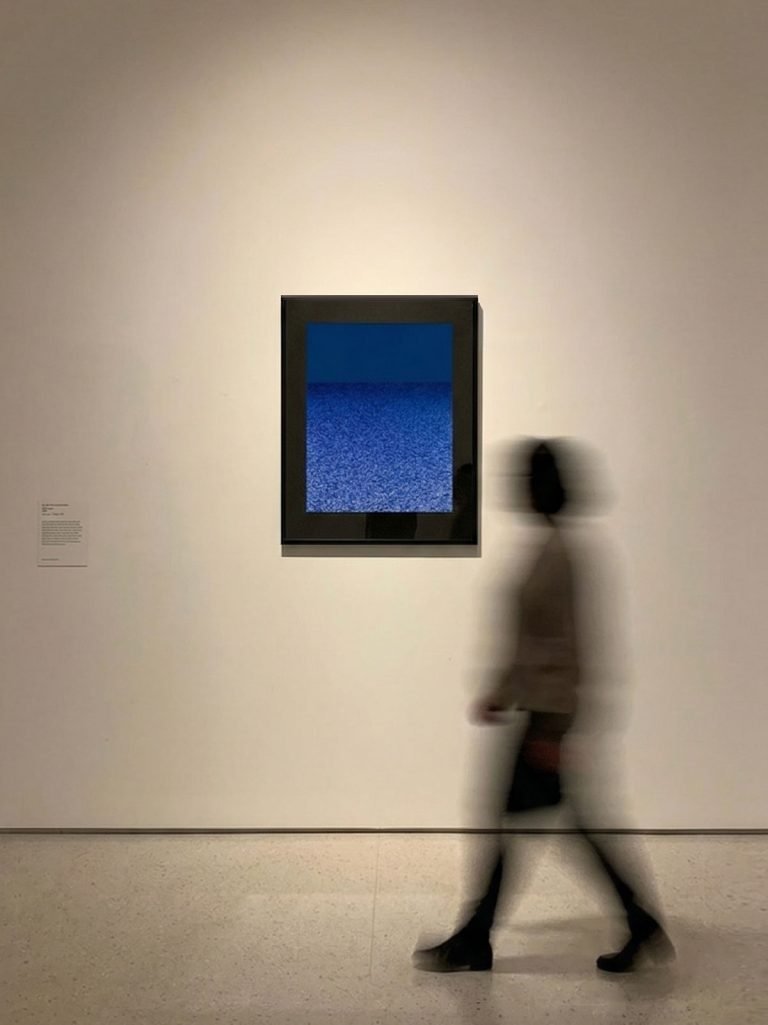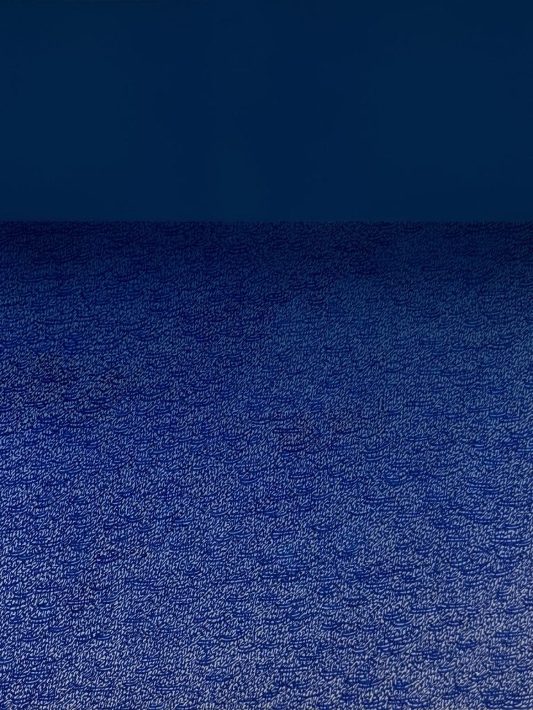 There is a moment — everyone has touched it, few have named it — when ordinary perception gives way to something else. When the eye stops trying to locate itself and simply opens. This work lives in that moment. Dark, absorbing, its deep blue-black field gives nothing easily. But stay. The surface begins to breathe. Text emerges at the threshold of visibility — a mind that was here, thinking, dissolving its thoughts into the ground. The moment beyond understanding is not confusion. It is clarity of a different kind.