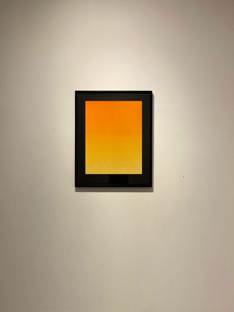 There is a place you have always known but rarely visited. Not distant — closer than thought. This work is the opening toward it. Standing before it, the eye finds no fixed point, no instruction. Only a field that shifts as you stay with it — colour moving from warmth into something deeper, and beneath that surface, the faint presence of language that cannot be read. It was written. It is there. But it has been given back to silence, so that what fills the space is not the artist’s words but your own. A window, not outward. Within.
